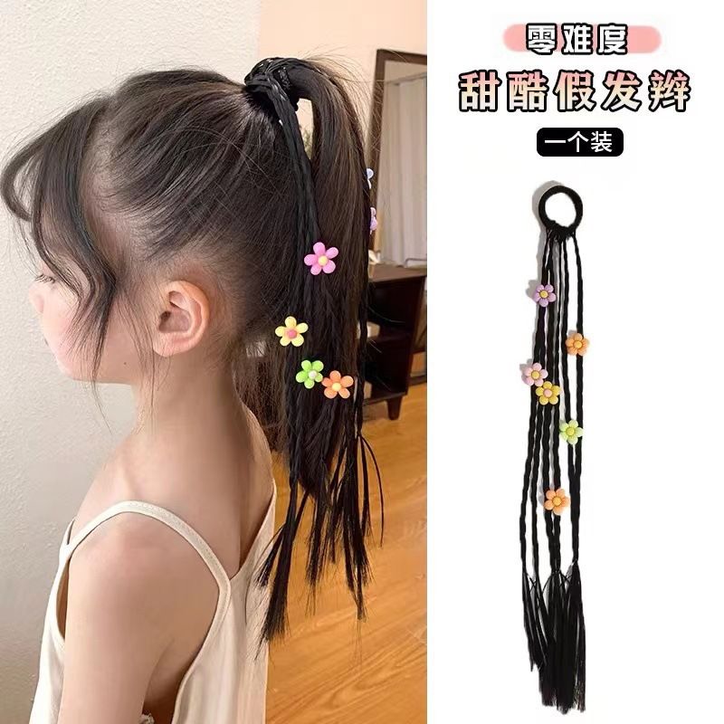 New Sweet Cool Boxing Braid Children's Wig Braid Hair Ring Little Girl High Ponytail Love Braided Hair Rope Hair Accessories Style_1 AS PICTURE