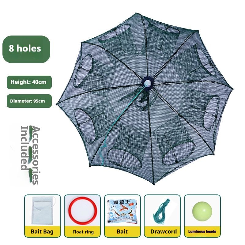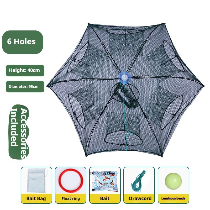 Foldable Umbrella Fishing Bait Trap, Automatic Shrimp Crab Minnow Cage with Only-in No-out Design, Full Accessories Fishing Net for River Lake Pond Fishing