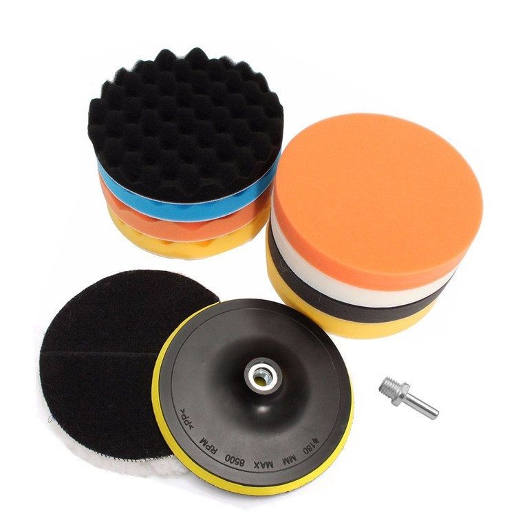 11PCS Car Polishing Kit 3–6 Inch Sponge Wool Buffing Pads Backing Plate M10/M14 Drill Adapter Set for Car Waxing Cleaning Polishing Tool Kit
