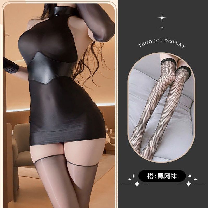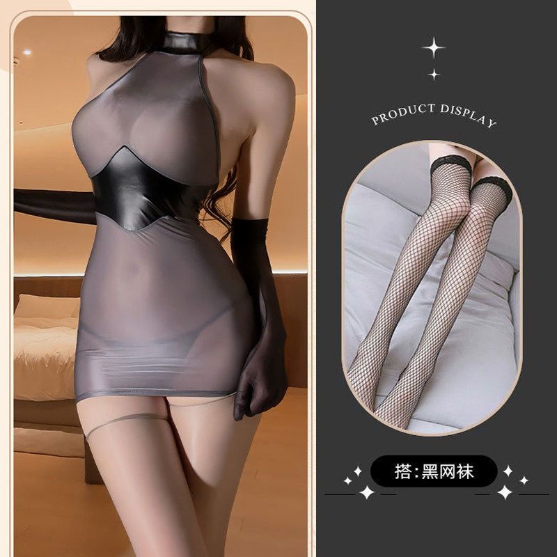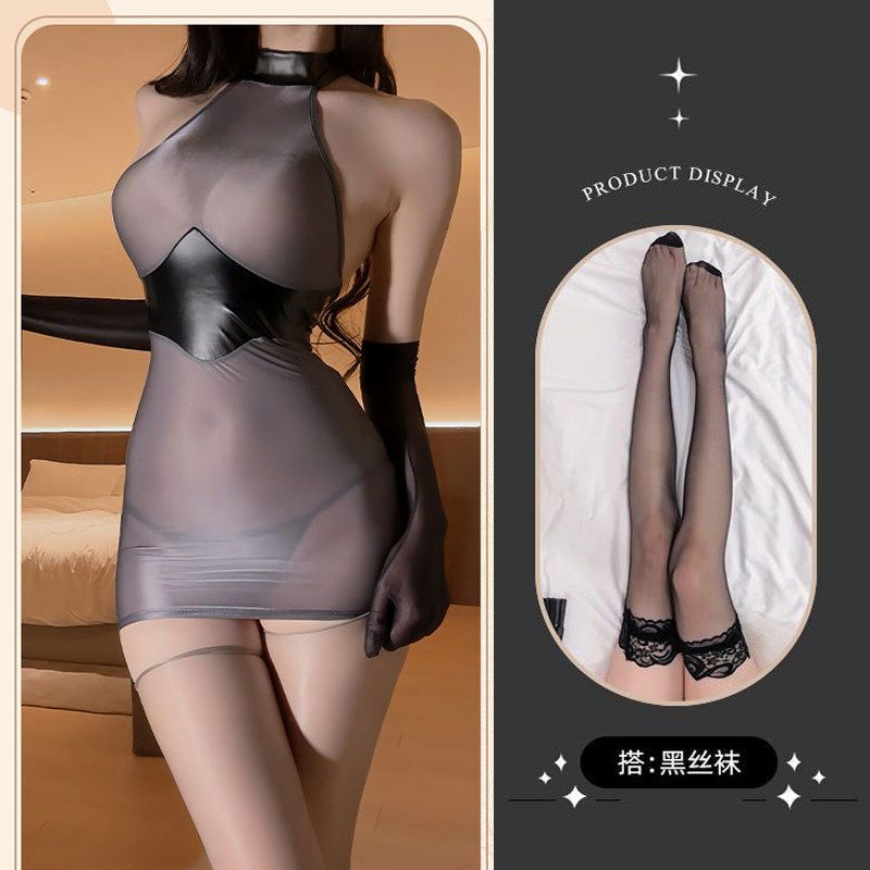 Sexy Underwear 2025 New Sexy Pajamas Temptation Passionate Bed Shame Perspective Uniform Oil Shine Package Hip Skirt