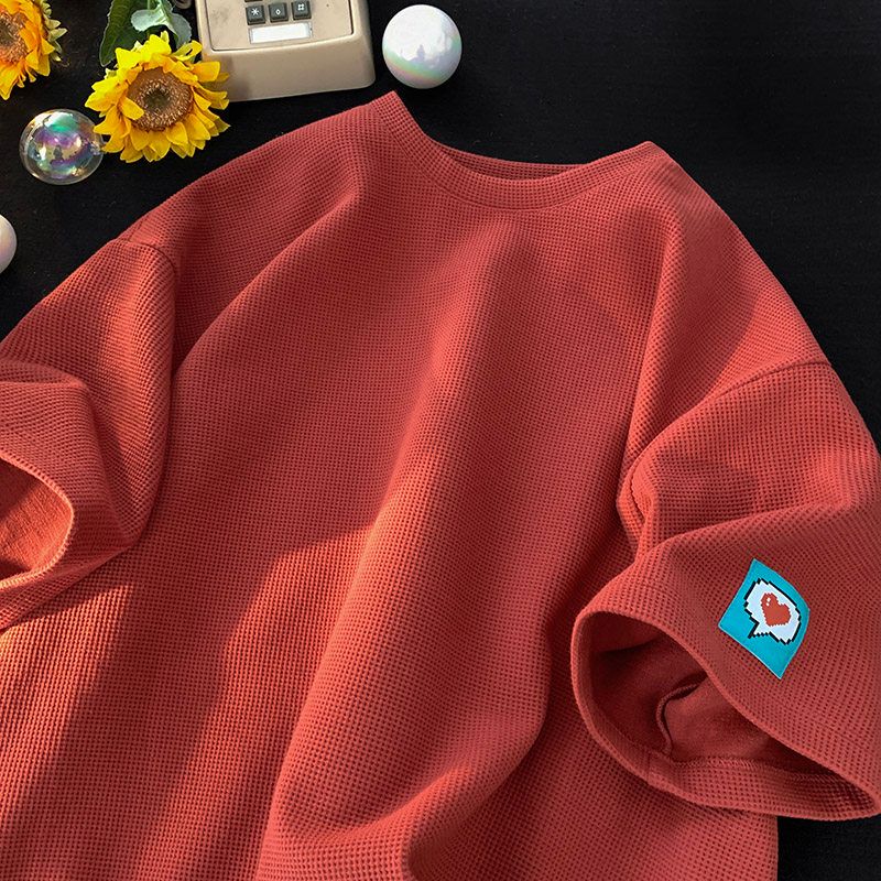 Foreign trade leftover ice silk short sleeved t-shirts for boys, waffle style loose five quarter sleeves, heavy weight for teenagers, half sleeved clothes