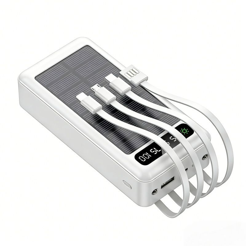 20000mAh Solar-powered power bank Treasure Large Capacity Self-belt Portable LED Lighting Function Solar Charging