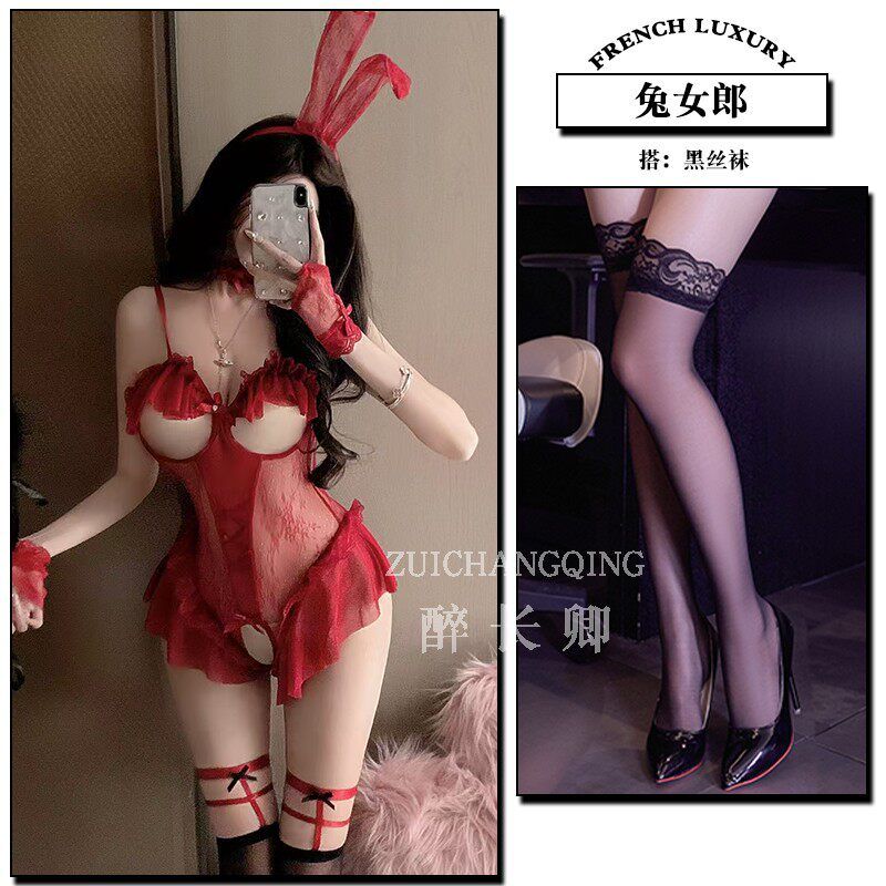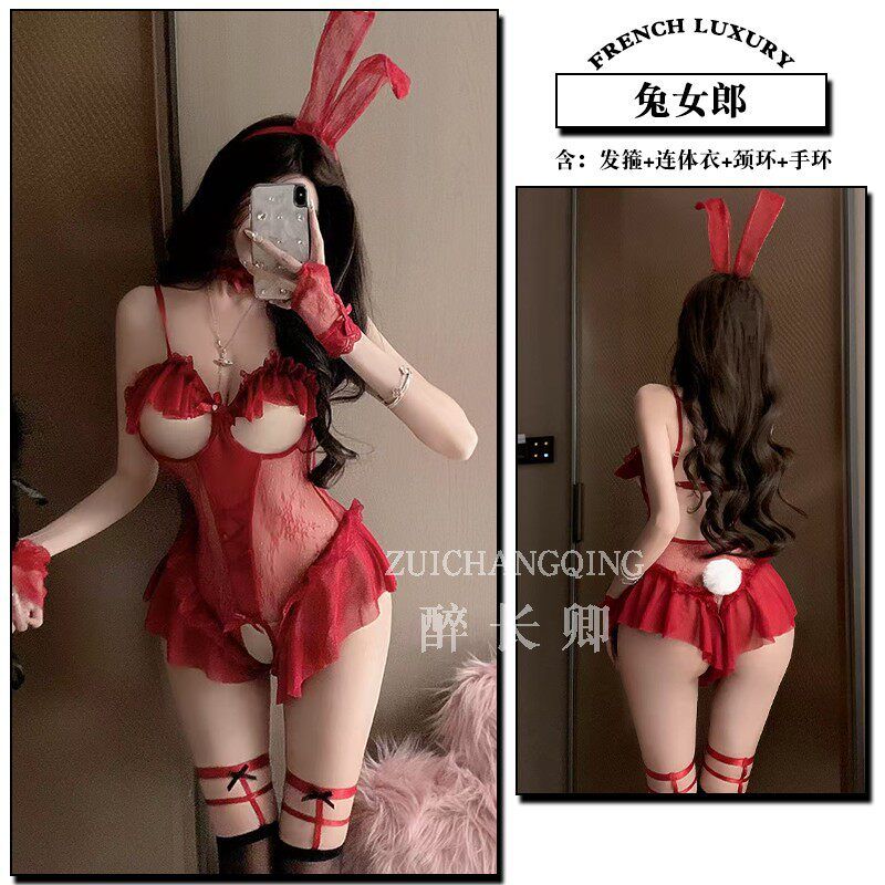 Sexy lingerie red sexy bunny girl uniform temptation outfit large-scale passionate crotch hot sleeping clothes qqny