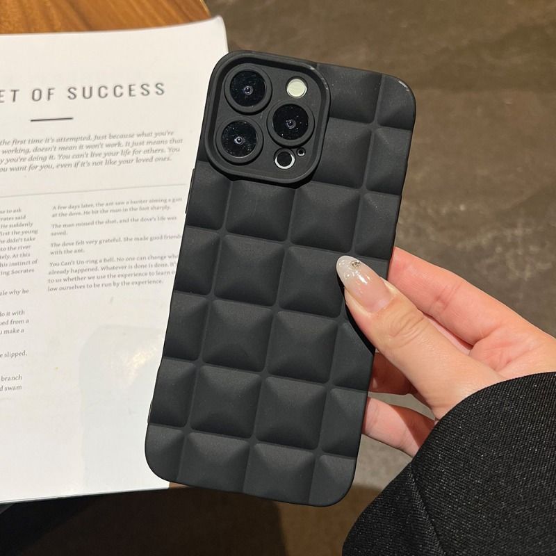 Chocolate Bar 3D Grid Solid Color Anti-fall Case For iPhone 17 16 15 14 Cases Mobile Accessories Phone Case
