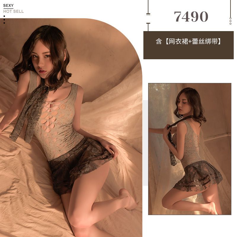 7490 gray [mesh dress+lace strap]