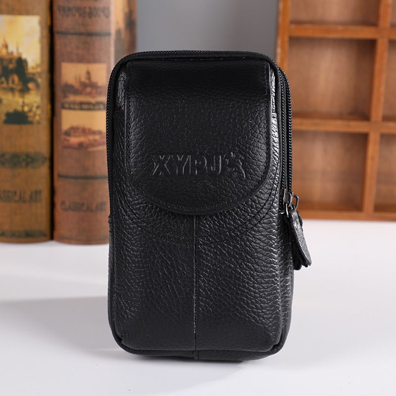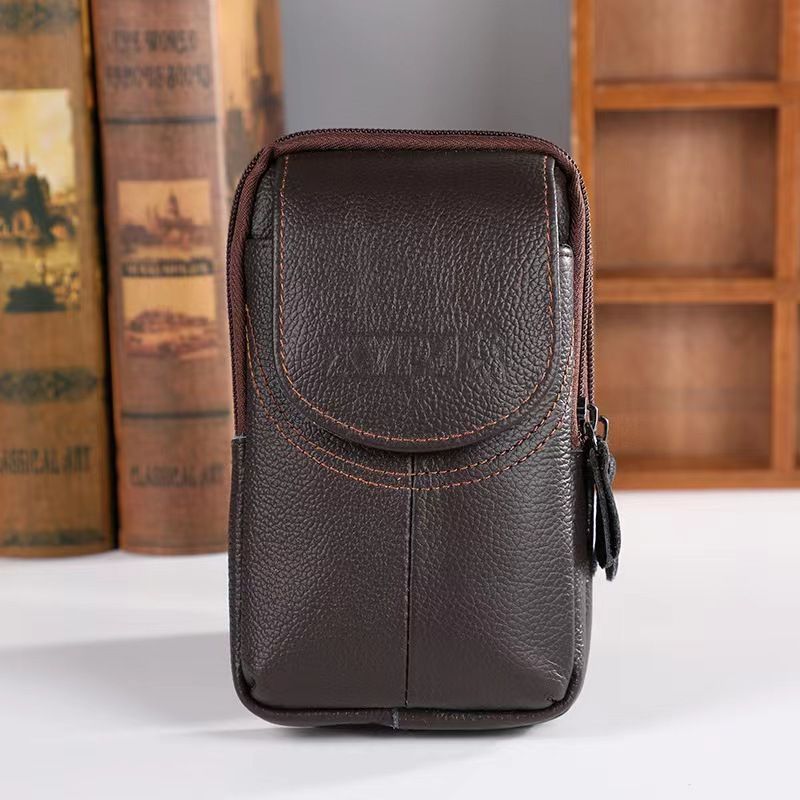 Simple leather waist bag for men, three-layer mother-and-child buckle flip cover coin purse, portable work, wear-resistant mobile phone waist bag