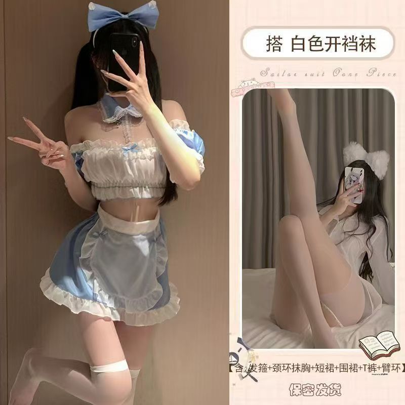 maid outfit (headband+neck ring strapless+short skirt+T pants+arms