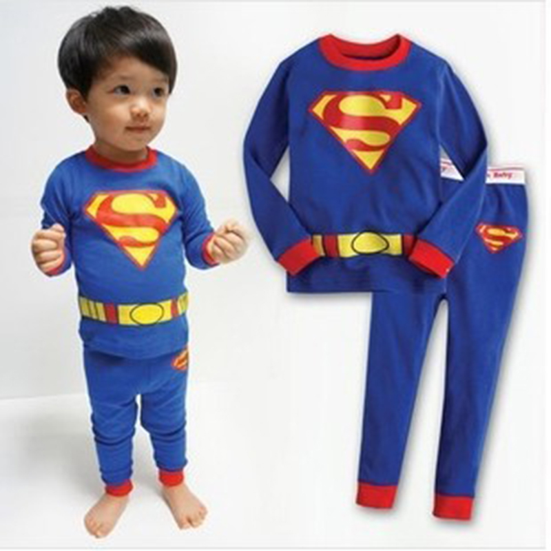 D-baby Boy Spider-man Iron Man Superman Car shirt +Trousers Children's Outfits Set Clothes Suits