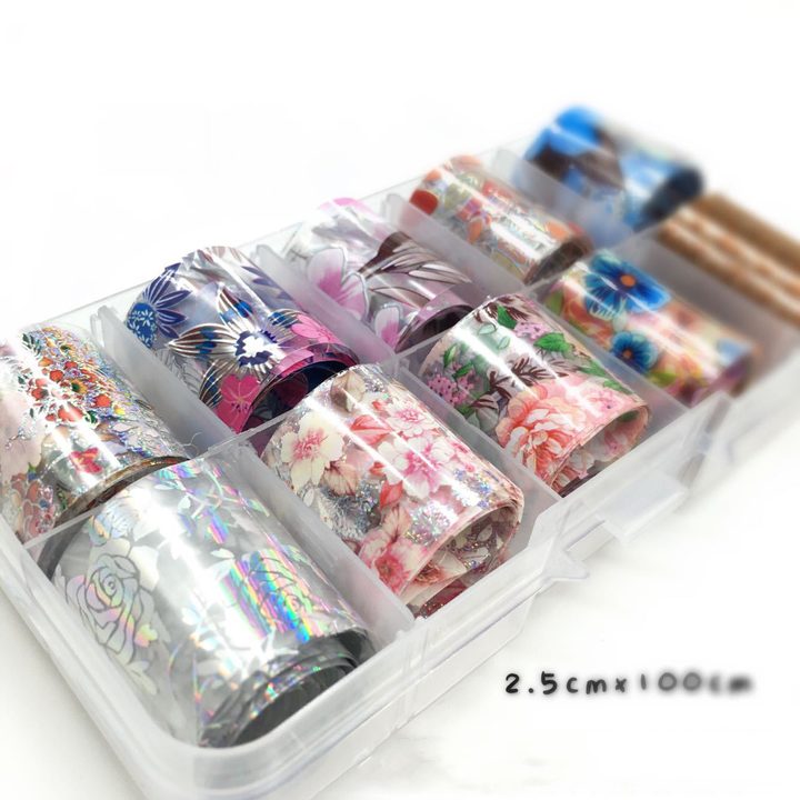 Holographic Nail Foil Set Transparent AB Color Nail Art Sticker Manicure DIY Nail Sticker Decoration