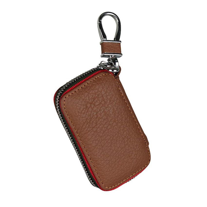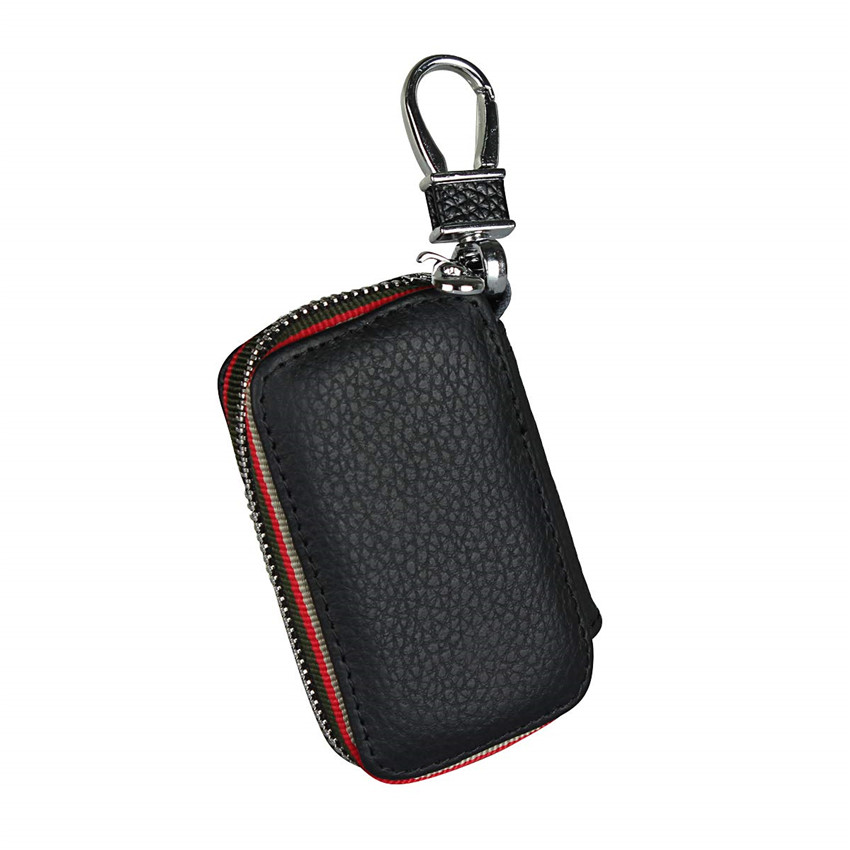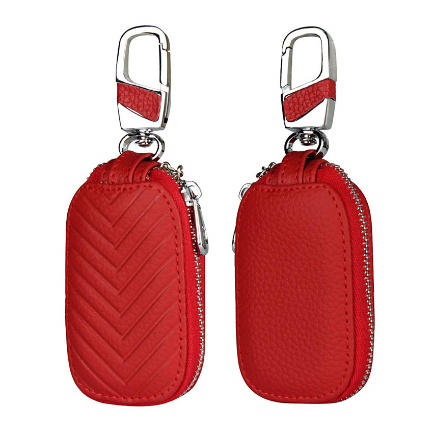iCoverCase Car Key Case,First Layer Cowhide Leather with Metal Keychain & Zipper Leather Bag for Key