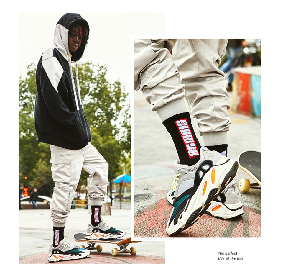 1 Pair Men Fashion Flame Pattern Hip Hop Funny Socks Harajuku Socks Street Skateboard Cotton Socks