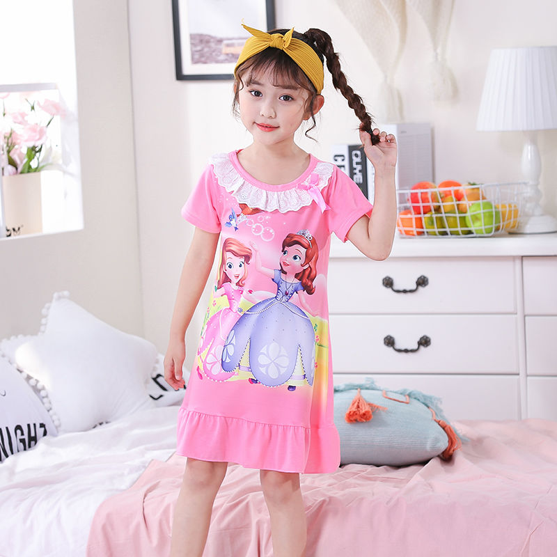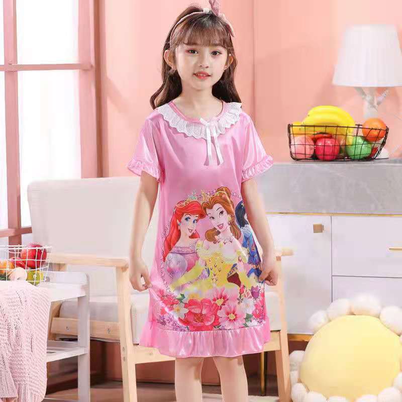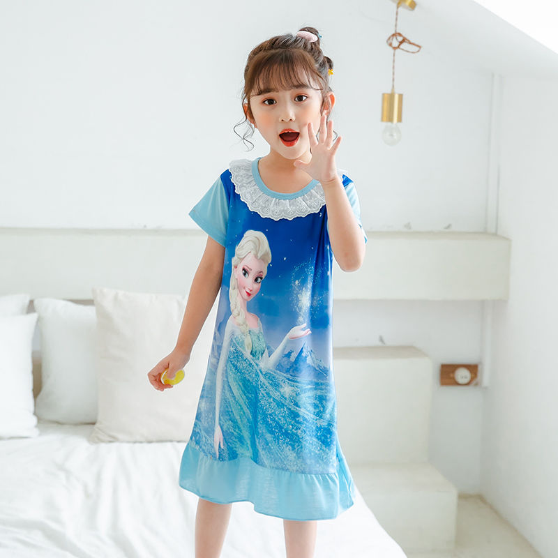 D-baby Kids Girl Dresses Summer Ice Ribbon Sleepwear Girls Cartoon Princess Print Nightgown