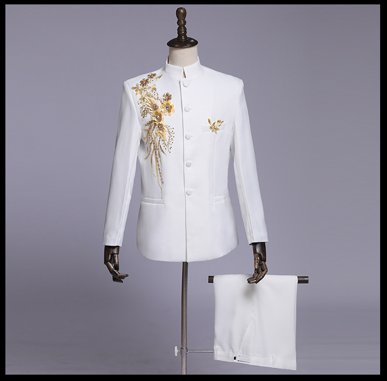 Jacket + Pant Men Business Slim Suits Solid printing Wedding Office Dress Prom Suit Two-Piece Fashion City Embroidery/Embroidery Craft Print Vintage Style