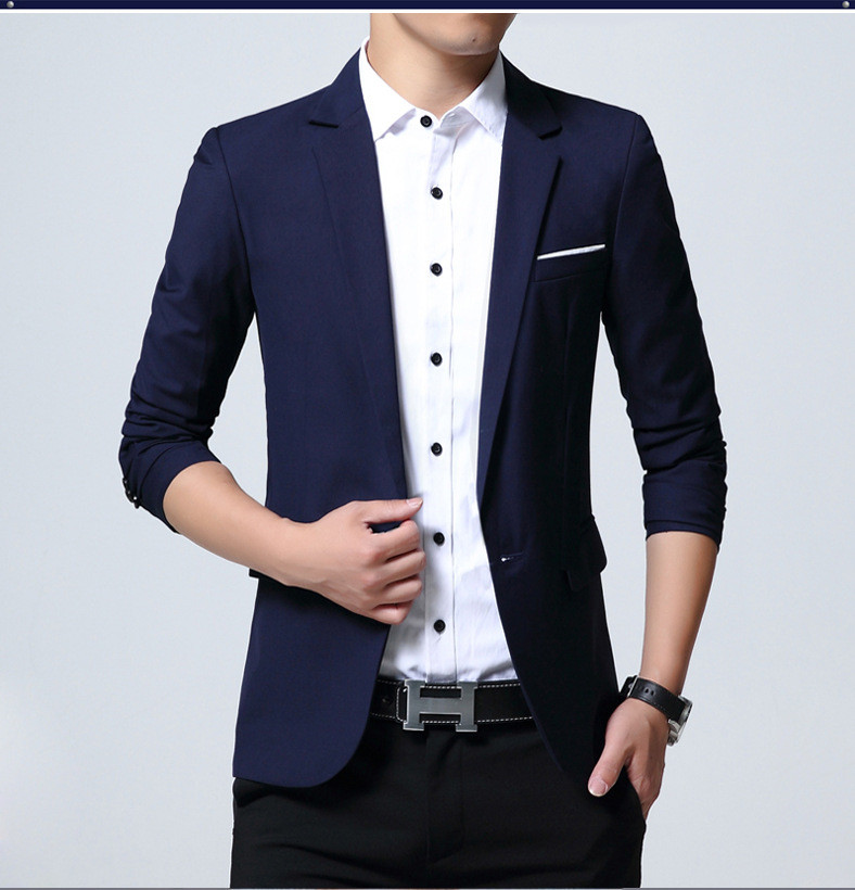 Men's Fashion Slim Suits  Casual Groomsman Clothing Business office Pure color Loose coat