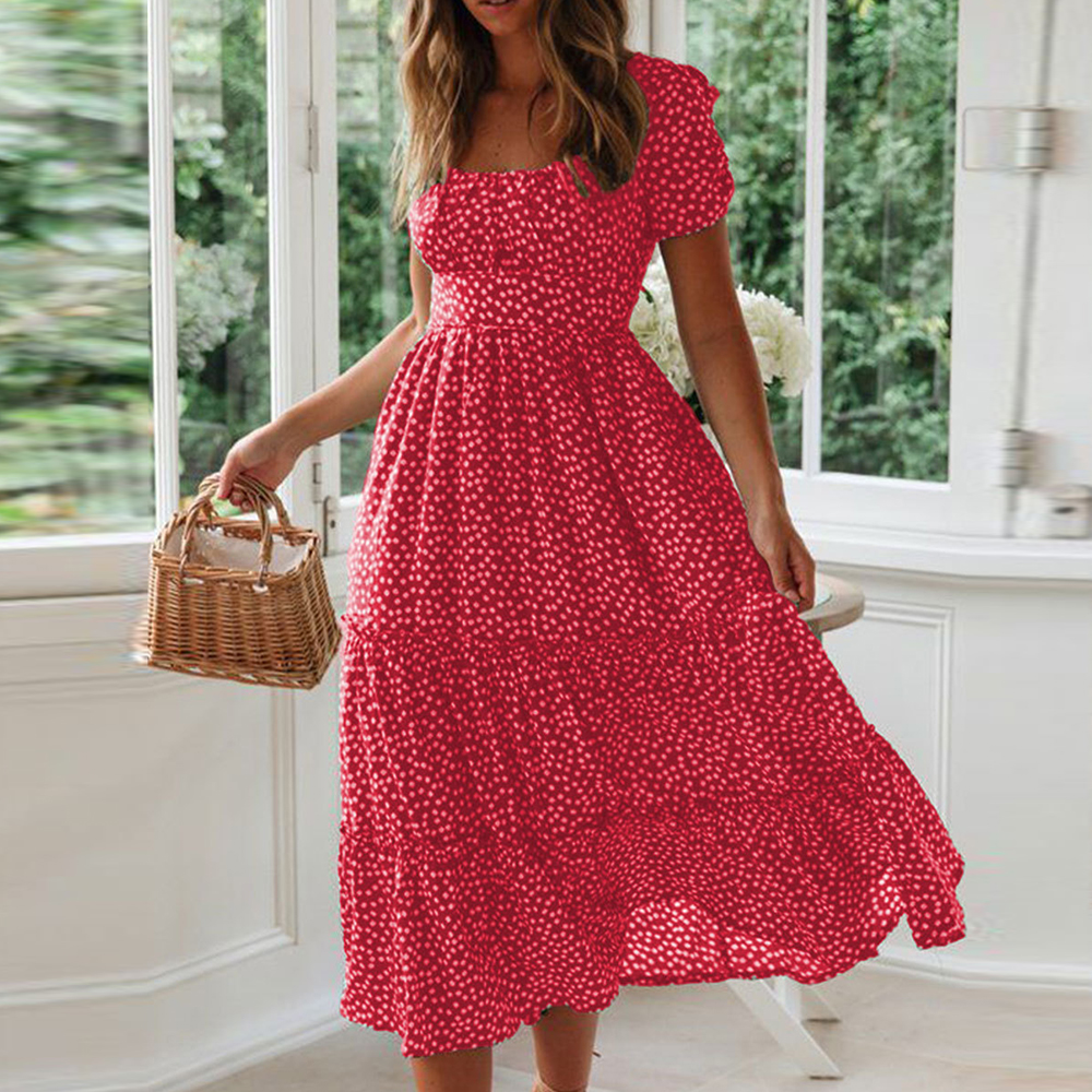 High quality Women Summer Dresses Women Casual Bohemian Short Sleeve Square Neck Wrap Boho Maxi dress
