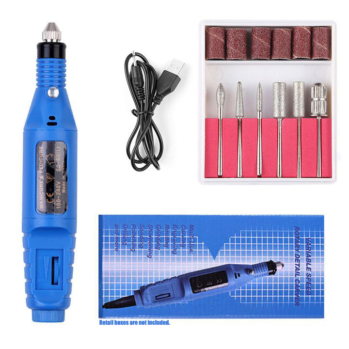 Sale Power Professional USB Electric Manicure Machine Pen Pedicure Nail File Nail Tools 6 Bits Drill