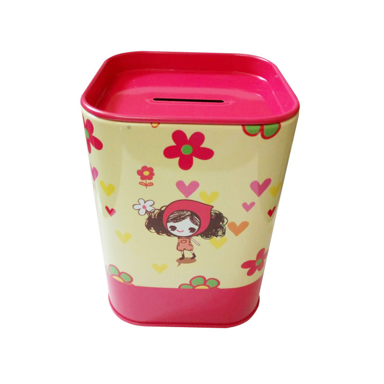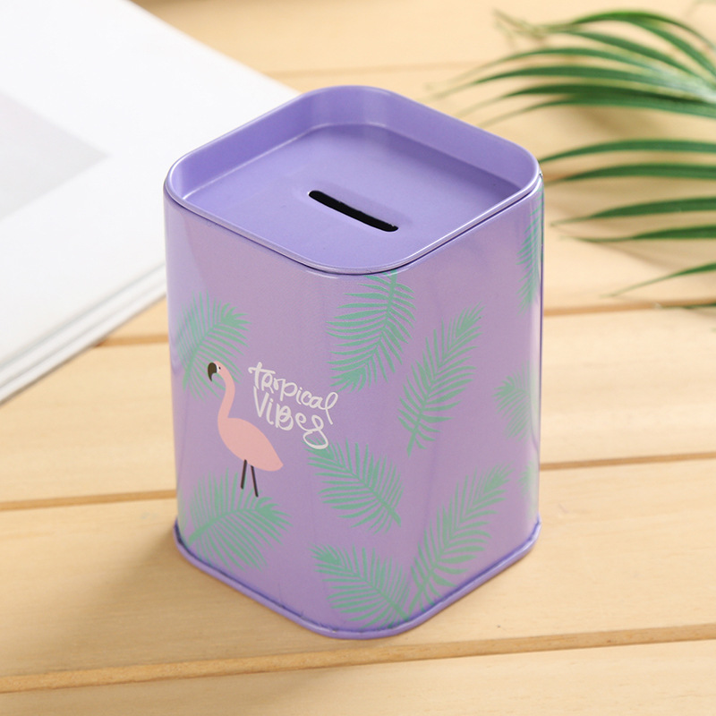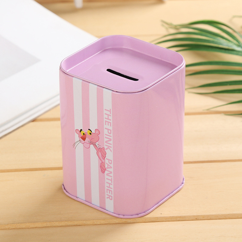 Square Metal Tinplate Piggy Bank British Lunfeng Piggy Bank Cartoon Children Piggy Bank
