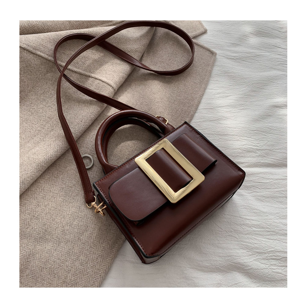 Retro Hong Kong Style Small Square Bag Female Portable Messenger Bag Solid Color Texture
