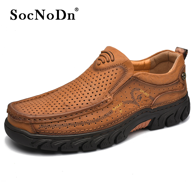 SocNoDn Luxury Men's Fashion Hollow Genuine Leather Shoes Loafers Men Casual Hiking Sneakers Boots