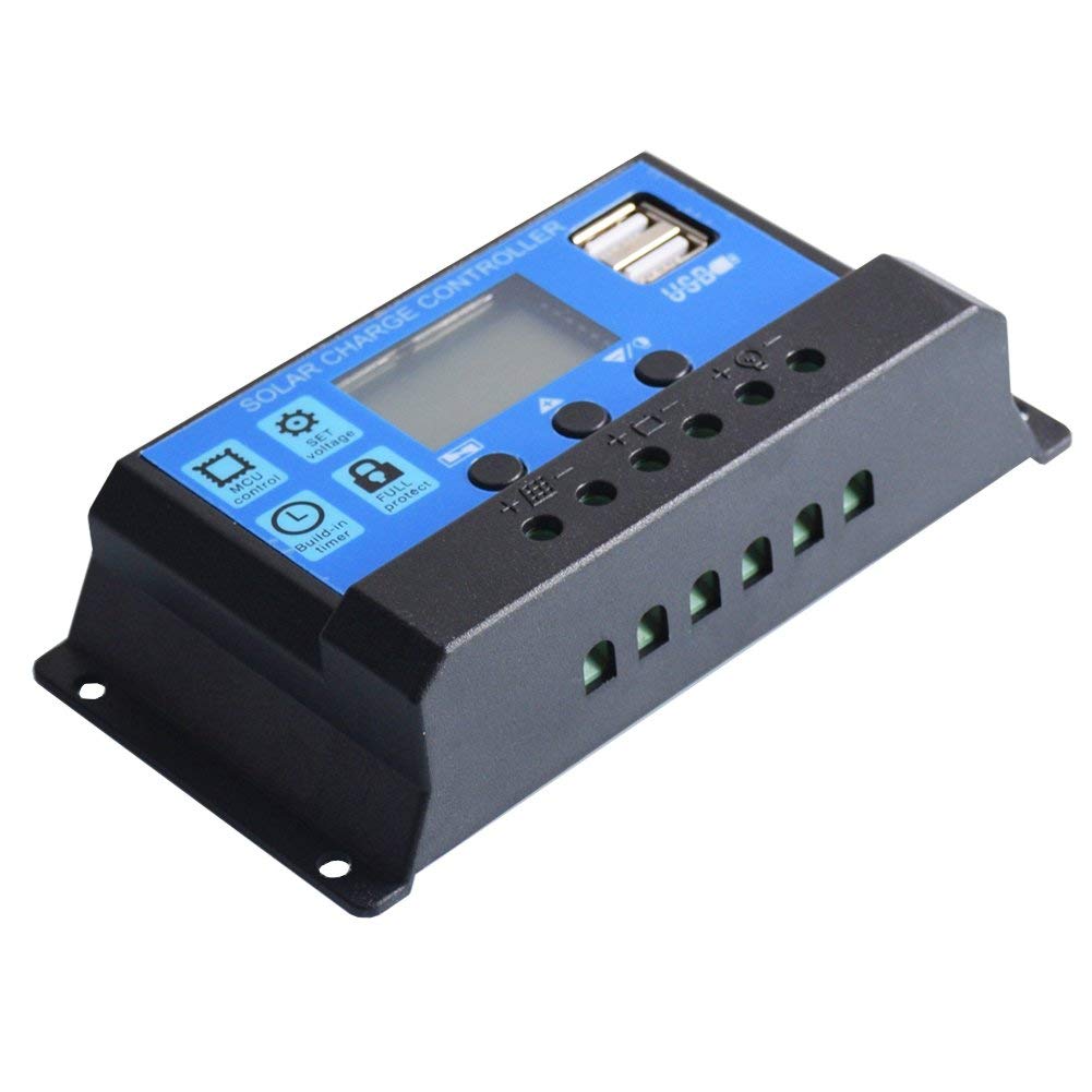 Solar Charge Controller 12V 24V PWM 30A with Adjustable LCD Display Dual USB Port Timer Setting Auto Parameter
