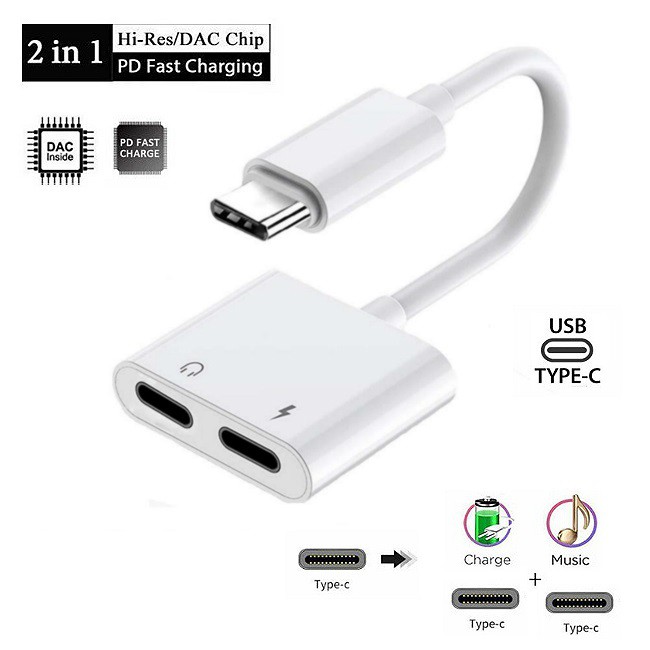 TYPE C Adapter & Splitter, 2 In 1 Aux Headphone Jack Audio & Charging Cable Adapter