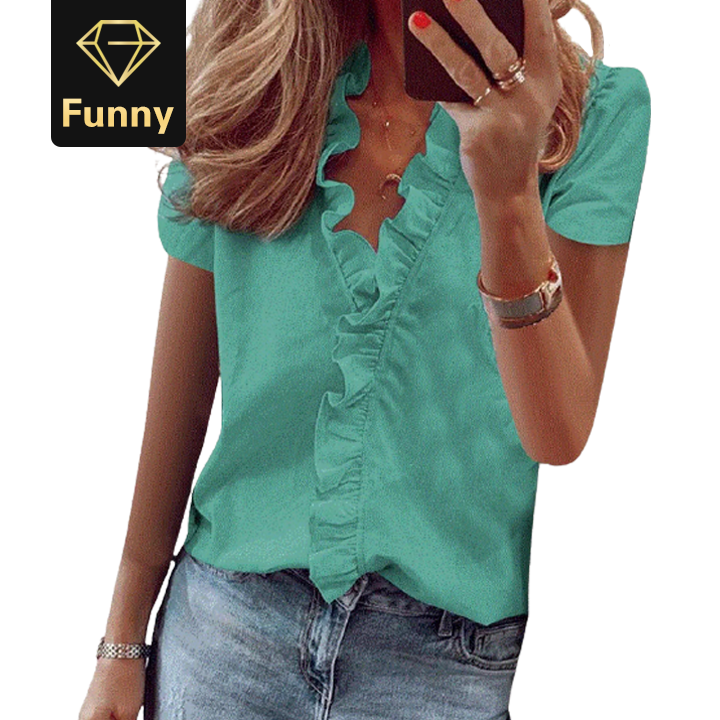 2021 High quality New Summer Short Sleeve Office Blouse Printed Short Sleeve V Neck Shirt Women Blouse Tops Big size