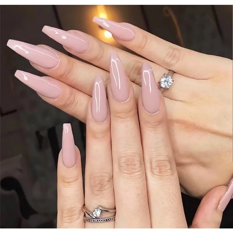 24Pcs Professional Fake Nails Long Half French Acrylic Nail Tips False Coffin Nails Art Kit Press