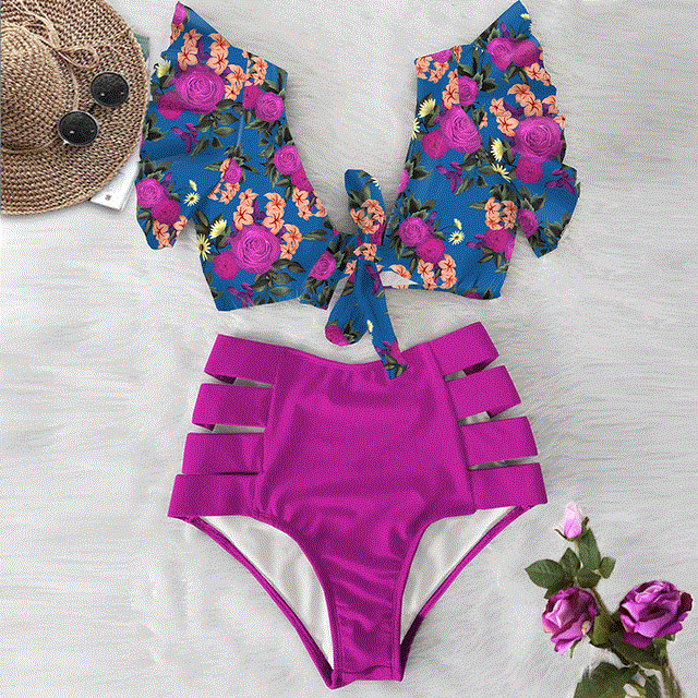 Sexy Bikinis Shoulder Ruffle Bikini Set High Waist Swimwear Women Swimsuit V-Neck Bathing Suit