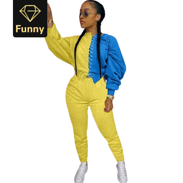 2021 High quality 2 pcs Women Sport Casual Outfit Fall Clothes for Women Sweatshirt Crop Top Sweatpants Suits