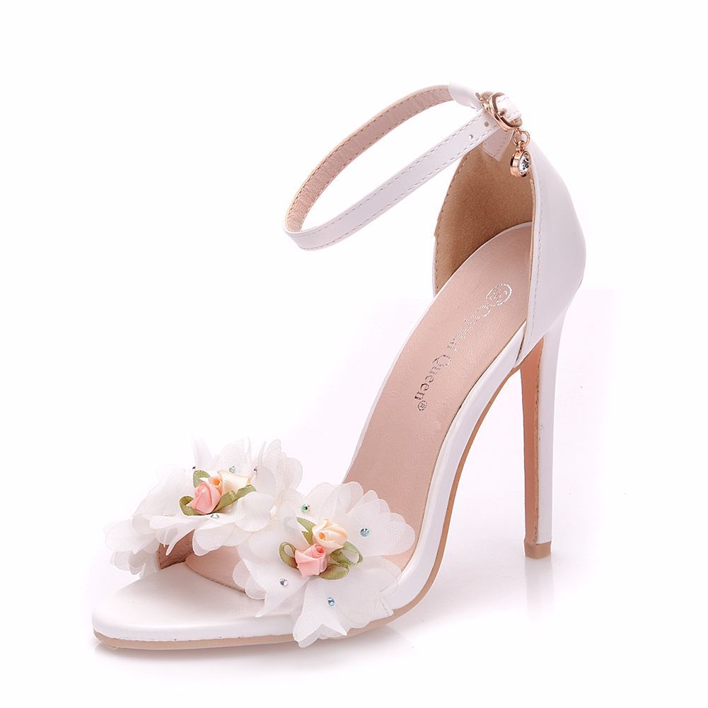 Limited time sales fashion high heel sandals white button shoes Roman shoes flowers