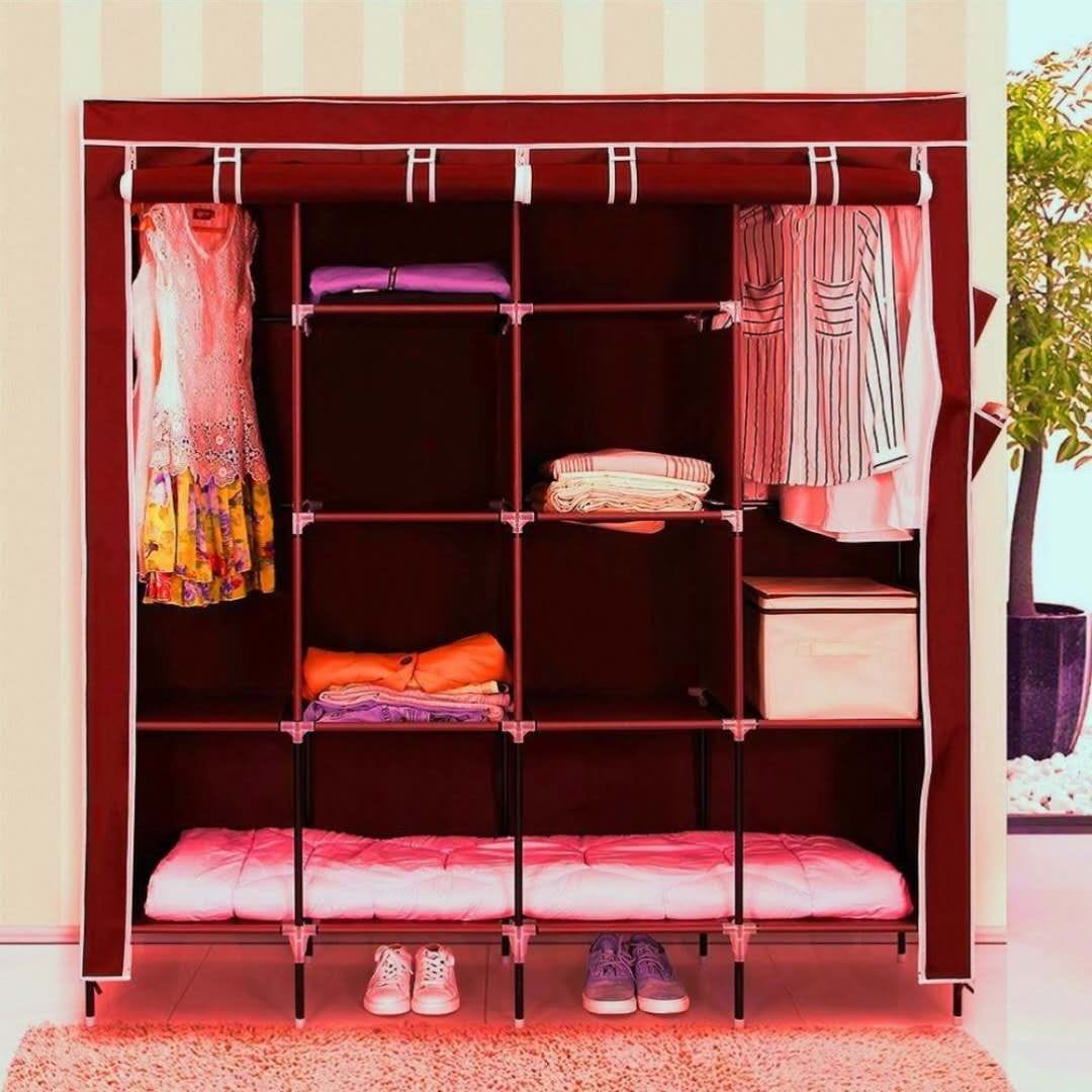 3 column heavy Foldable portable Metallic Wardrobe for clothes and shoes storage