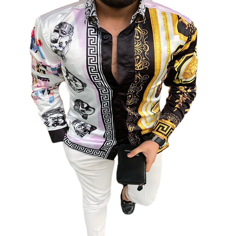 Europe and America autumn 2021 new men's cardigan printed long-sleeved slim men's shirt
