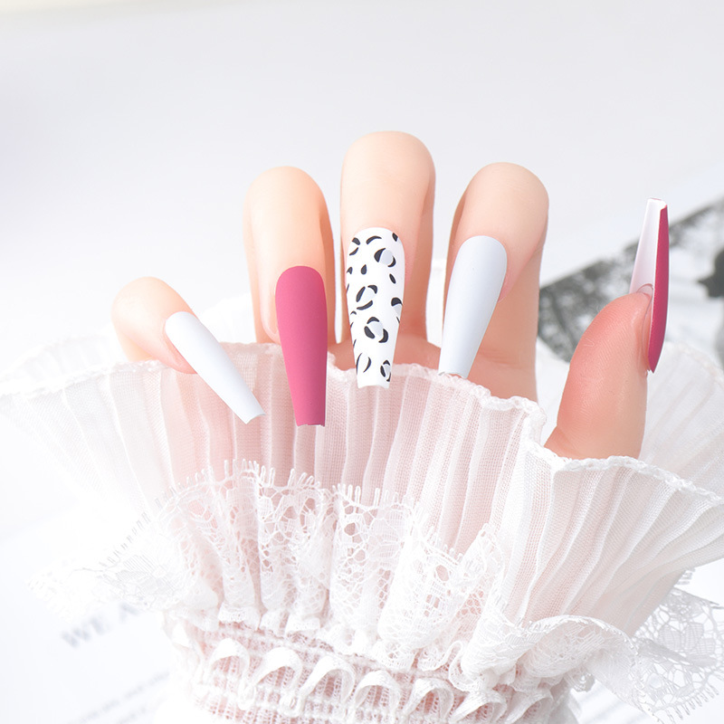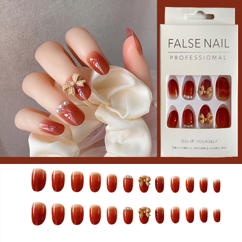 24PCS/set Fake Nails Nail Art Tips Press on False Tipsy with Glue Matte Stick Designs Clear Display Set Full Cover Artificial Detachable