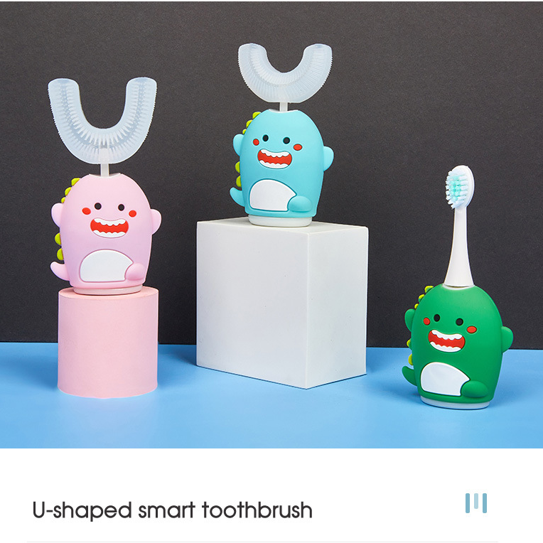 Smart 360° U-shape Sonic Electric Toothbrush Kids Silicone Automatic Cartoon Pattern Children Ultrasonic Toothbrush suitable for 6-12Y babies U-shape head + soft bristle head Support wireless charging