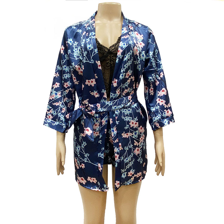 Floral Robe Knicker Lace Top Three Pieces Sleepwear Sexy Nightwear Pajamas Sets Loungewear Casual Nightdress Nightgowns Sleeve Long Pajamas Sets