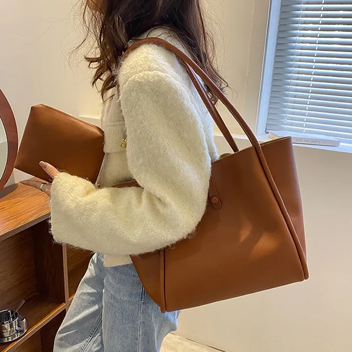 Fashion Women's Large Waterproof PU Leather Handbag Shoulder Bag Purse Card Holder Tote,Business Handbag Satchel Purse 2pcs Set