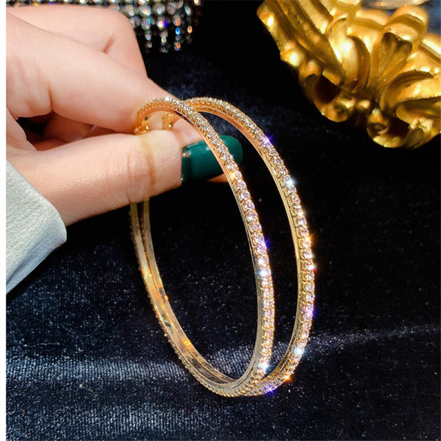 1pair 2pcs Fashion Big Round Crystal Hoop Earrings for Women Bijoux Geometric Rhinestone Earrings Statement Jewelry