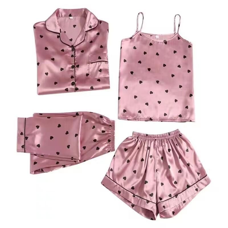 4 Pieces Sets Silk Pajamas For Women Sleepwear Women Sexy Crossbody Shorts Sexy Sex Long Pants Long Sleeve Sleepwear Satin Pajamas