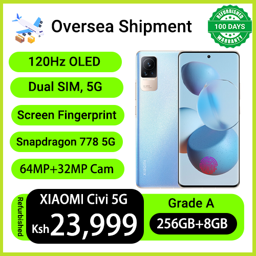 Refurbished Phones XIAOMI CIVI 128GB Storage 8GB RAM 5G Network Snapdragon 778G 64MP 120Hz NFC Curved Screen FHD 4500mAh Battery Stereo Dual Speakers Under Screen Fingerprint Smart Phones