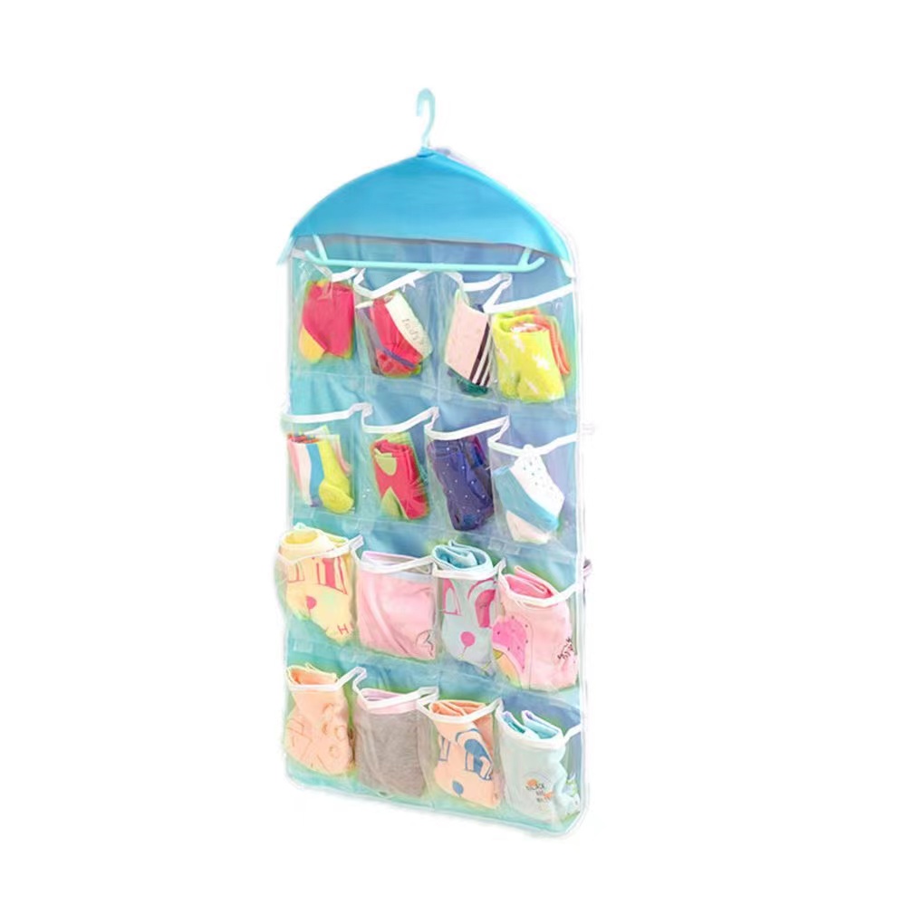 16 Pockets Clear Hanging Bag Socks Bra Underwear Rack Hanger Storage Organizer Underwear storage bag For Bathroom Living Room 1PCS