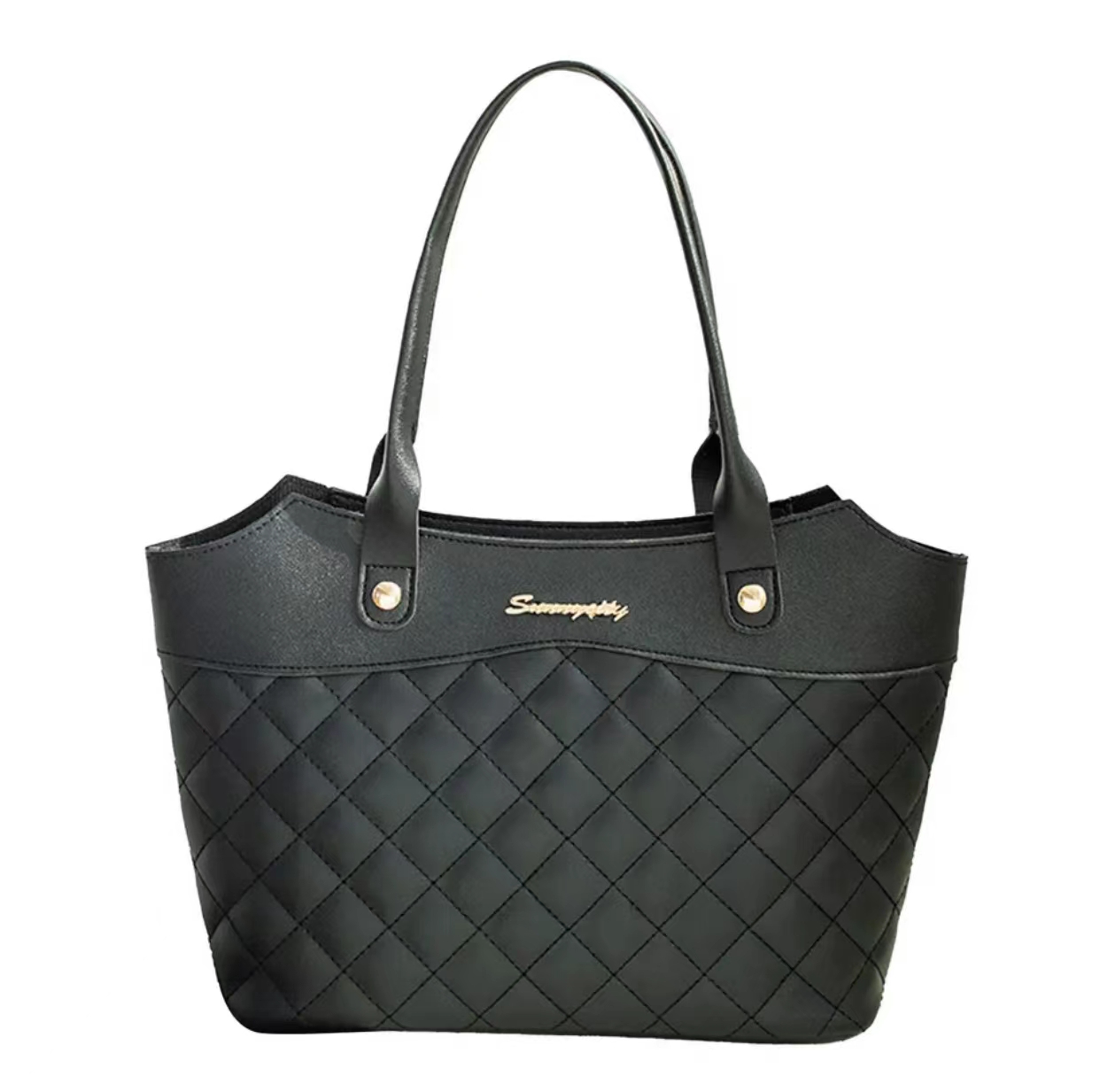 Fashion PU Leather Tote Bag Jacquard Letter Label Simple Style Elegant Wild Street Female Women Large Handbag Casual Tote Luxury Designer Work Handbag Messenger Clutch Purse Shopper Bags