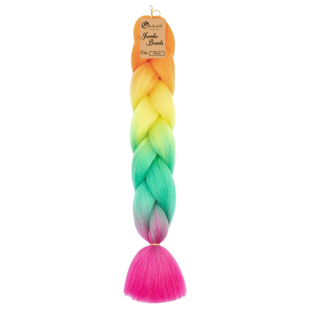 D3 Ombre Braid Rainbow Ombre Braiding Hair Rainbow Ombre Braid for Box Braids Cornrows Knotless Braids and Twists Hairstyles Four-Toned Ombre Braid with Colors Orange Yellow Green and Pink