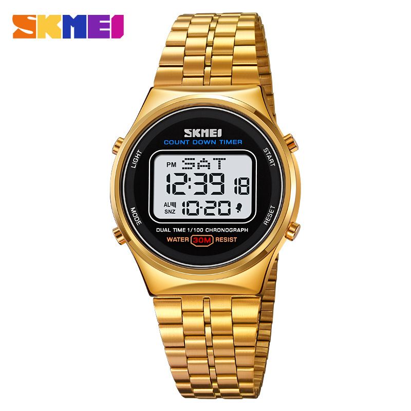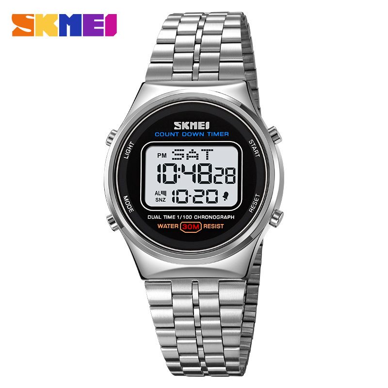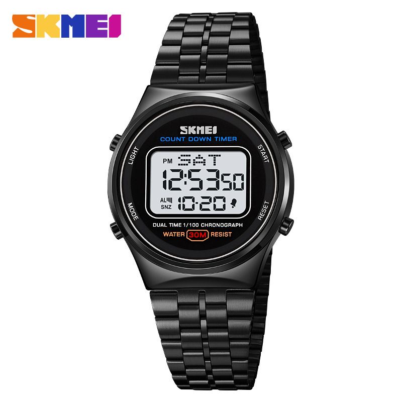 SKMEI Back Light Display Stopwatch Digital Sport Watches Stainless Steel Men Waterproof Date Alarm Wriswatch