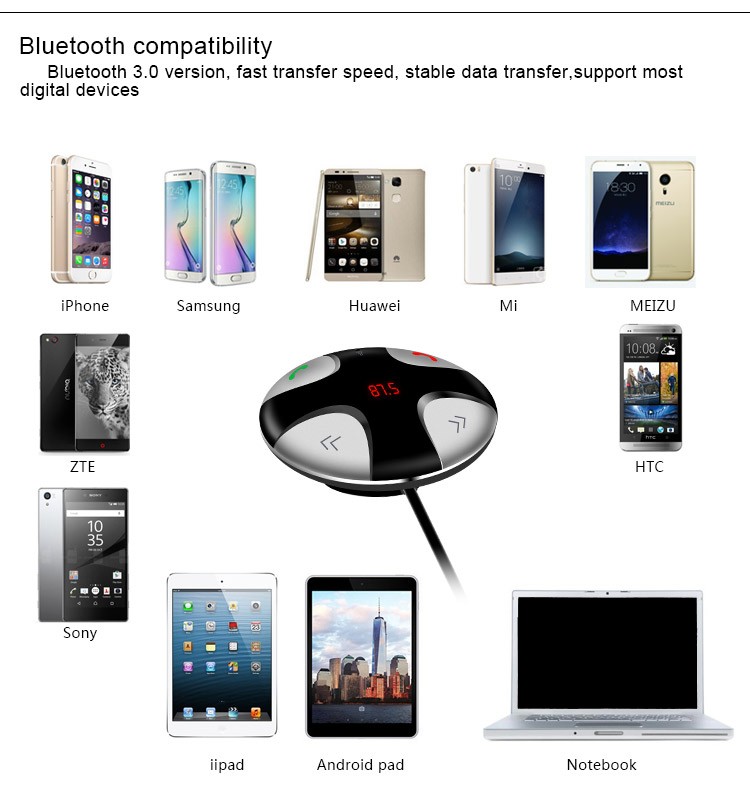 Universal FM Transmitter Bluetooth Car Kit MP3 Player Wireless Modulator LED Display USB Charger