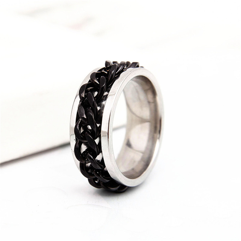New High-end Boutique Stainless Steel Chain Punk Rock Style Rotatable Ring 3 Colors for Man