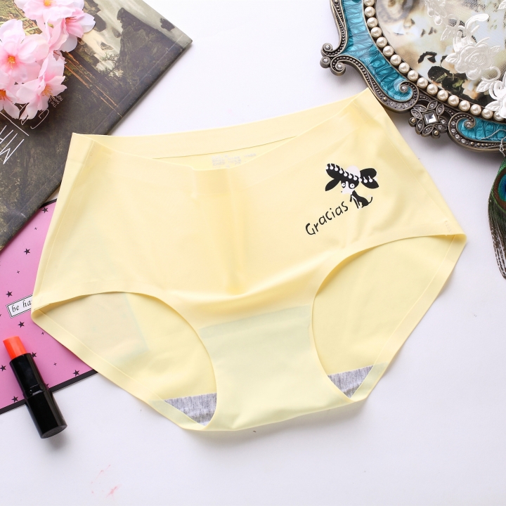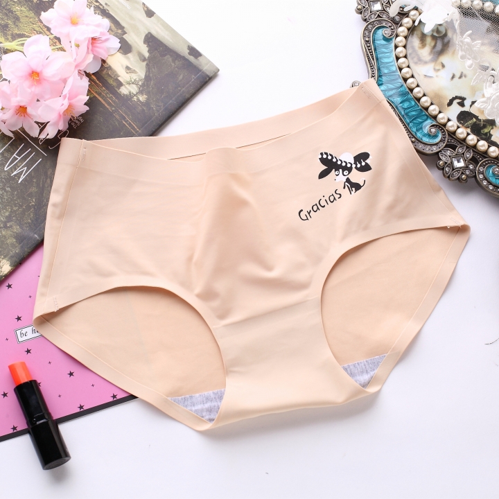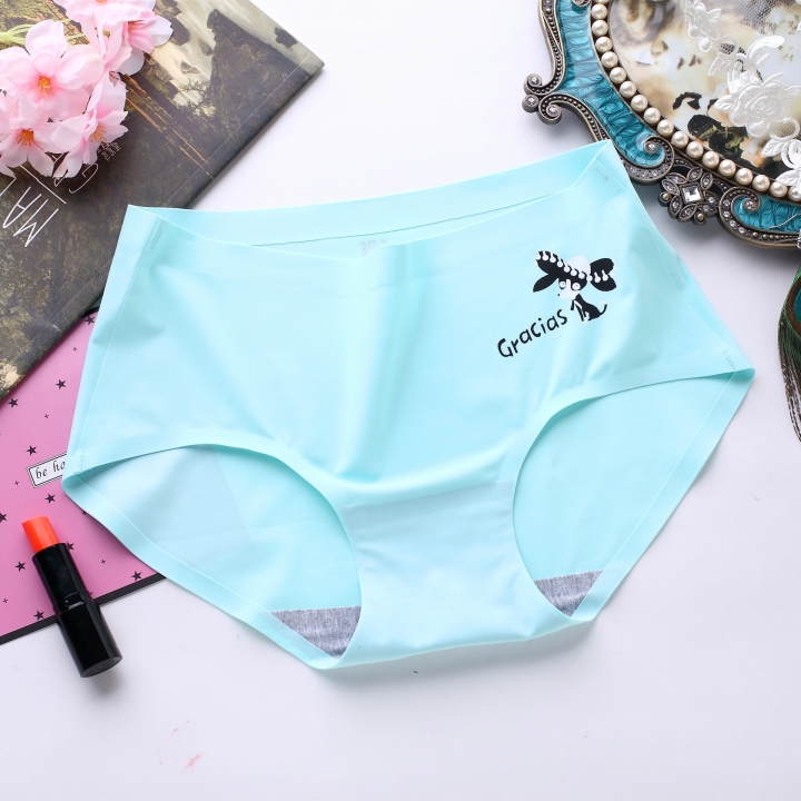 Ice silk Cartoon Printing One piece seamless No trace Ms Underwear High waist Cotton file Underwear
