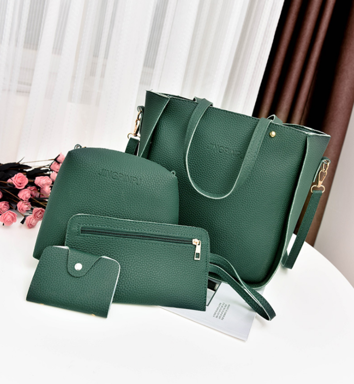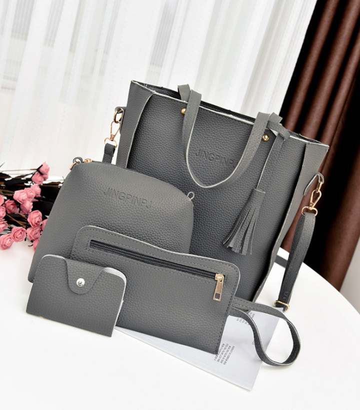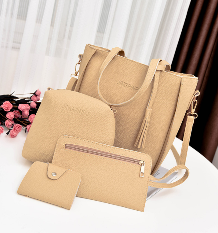 Women Bag 4 Set Top-Handle Big Capacity Female Tassel Handbag Purse Ladies PU Leather Crossbody Bag