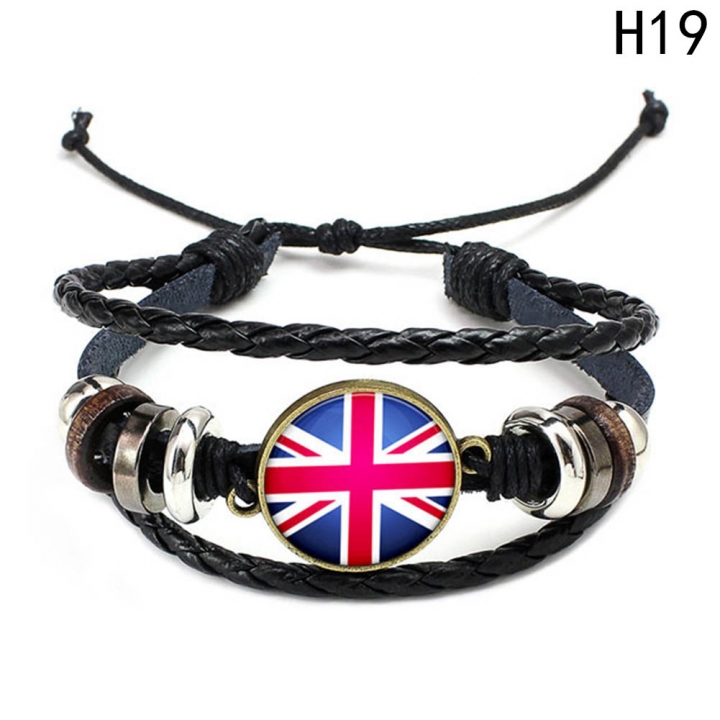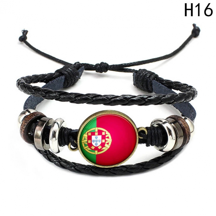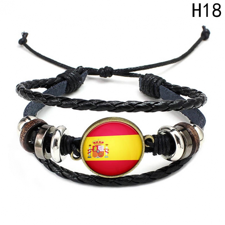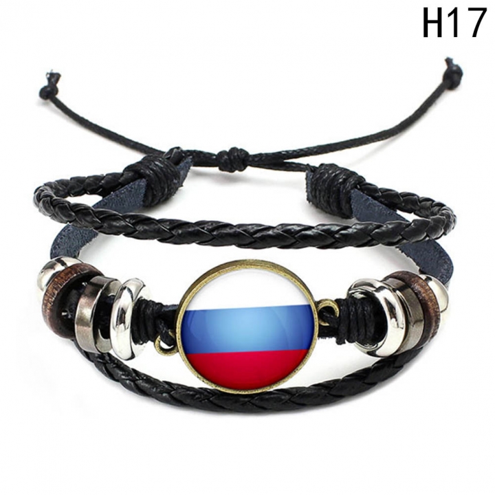 Western Style Manual Beaded World Cup National Flag Leather Rope Bracelets fan Souvenir